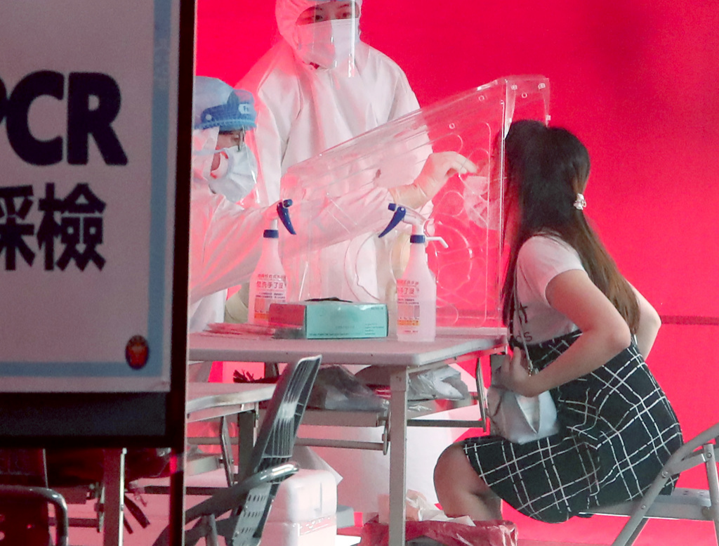 本地疫情尚未降溫,仍有不少民眾去篩檢站篩檢。(鄭任南攝)