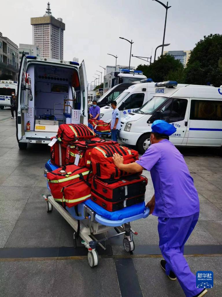 6月1日,救援隊(duì)出發(fā)前準(zhǔn)備醫(yī)用救援品。