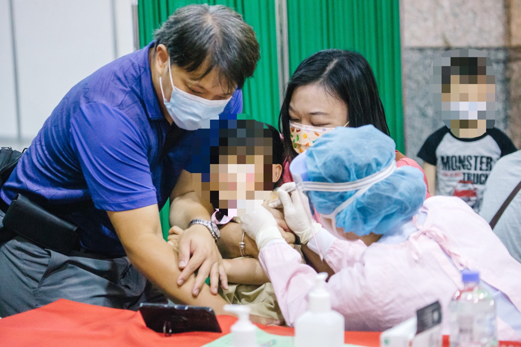 新北市板橋車站開設(shè)兒童大型接種站,提供5至11歲兒童施打疫苗。(郭吉銓攝)