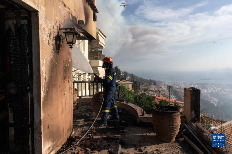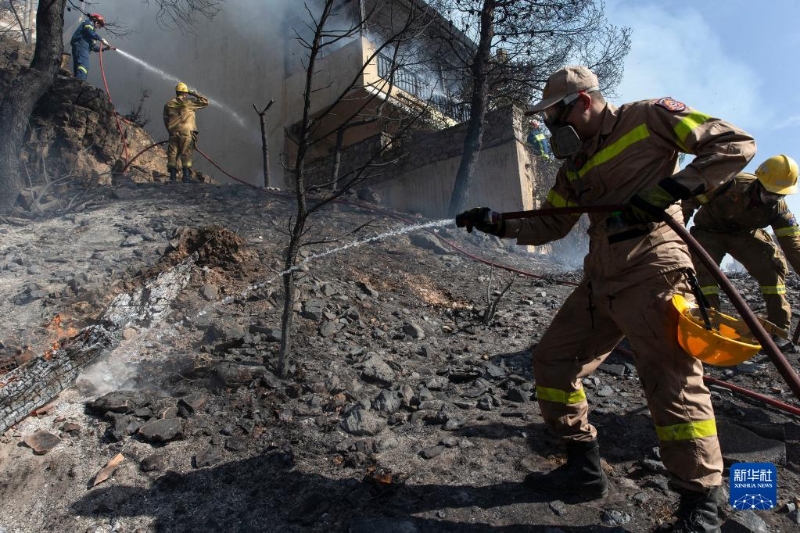 6月4日,消防員在希臘首都雅典南部郊區(qū)滅火。新華社發(fā)(馬里奧斯·羅洛斯攝)