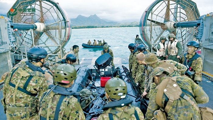 在“環(huán)太平洋”演習(xí)中,日本、加拿大和美國參演人員搬運(yùn)一艘戰(zhàn)斗橡皮突擊艇入海(資料圖)。