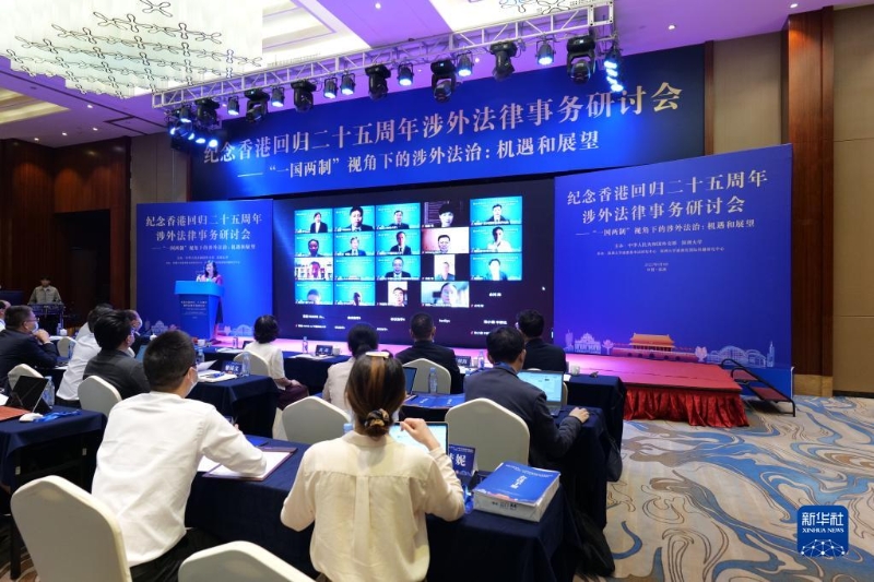 6月9日,由外交部與深圳大學(xué)主辦的“‘一國兩制’視角下的涉外法治:機(jī)遇與展望——紀(jì)念香港回歸二十五周年涉外法律事務(wù)研討會”在北京、深圳以線上線下相結(jié)合的方式舉辦。這是深圳會場。新華社記者