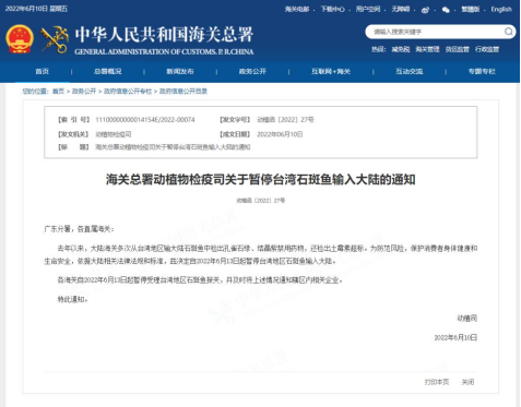 據(jù)臺(tái)媒報(bào)道,臺(tái)灣近年外銷石斑魚至大陸占整體出口均逾9成,但近年受到疫情消費(fèi),導(dǎo)致石斑魚生產(chǎn)下降,確切的影響仍待評估。
