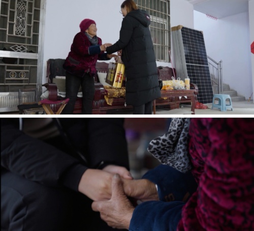 在徐州賈汪村,我們來到了張奶奶家,她患有白內(nèi)障,一家人靠政府低保生活,見到我們,她親切地牽著工作人員的手,拉起家常。