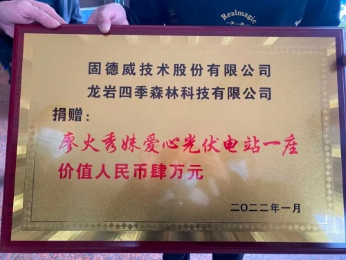 為弘揚積極開展扶貧濟困、助力鄉(xiāng)村振興的精神,適中鎮(zhèn)人民政府還授予龍巖市四季森林科技有限公司“愛心企業(yè)”榮譽稱號,固德威與有榮焉!