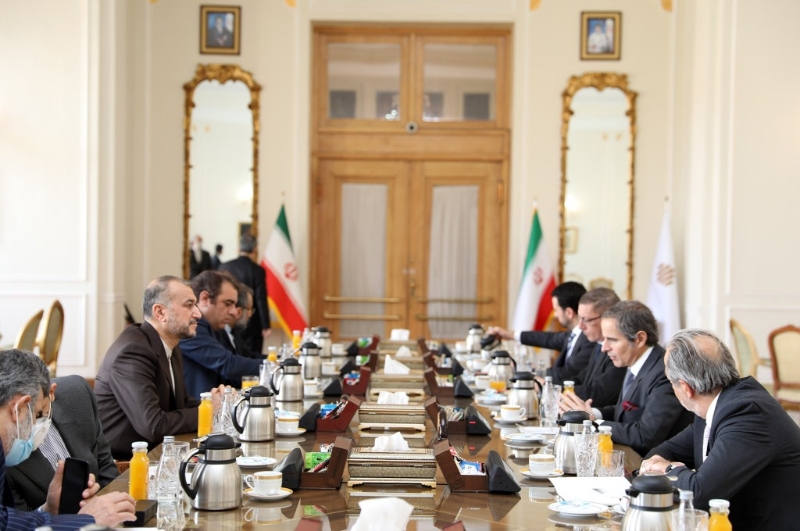 3月5日,伊朗外長阿卜杜拉希揚(左三)在德黑蘭會見國際原子能機構(gòu)總干事格羅西(右二)。新華社發(fā)(伊朗外交部供圖)
