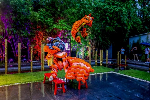 古代的宴席常以歌舞助興。走進(jìn)燈籠陣后,就能看見“古人”翩翩起舞,民樂合奏《丹鳳》,手持酒杯吟詠《將進(jìn)酒》,管弦鐘磬、輕歌曼舞,盡顯東方韻味,此情此景讓嘉賓瞬間投身于古代情境中。此外,梅見還將醒獅表演融入其中,恰好將梅見品牌的國(guó)雅文化與廣府文化融會(huì)貫通。