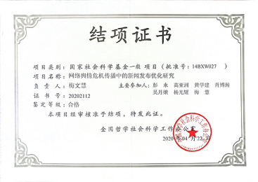 國(guó)家課題《網(wǎng)絡(luò)輿情危機(jī)傳播中的新聞發(fā)布優(yōu)化研究》結(jié)項(xiàng)鑒定專(zhuān)家意見(jiàn)
