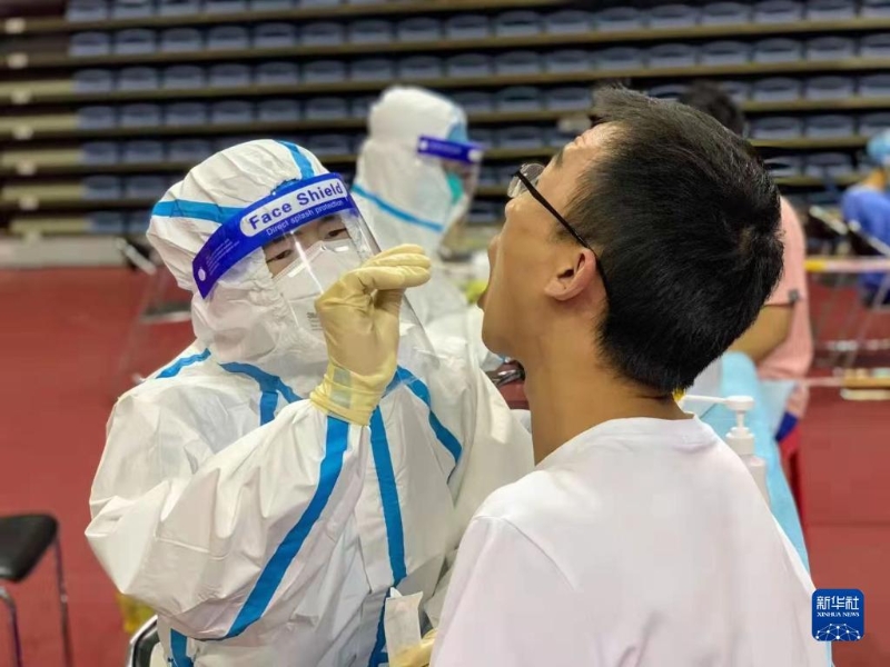 2021年,馮志偉(前左)在南京參加抗疫志愿服務(wù)。新華社發(fā)