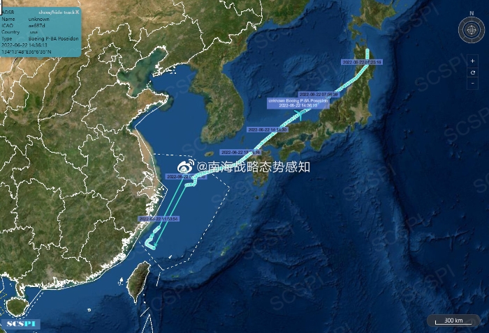 6月22日,美海軍一架P-8A在東海進(jìn)行異常抵近偵察,在長江口外海高強(qiáng)度活動(dòng),很可能意在中國海軍“福建艦”。
