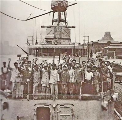 國民黨海軍“長(zhǎng)治”艦官兵起義后抵達(dá)上海