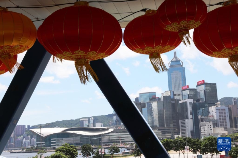 香港中環(huán)海濱長廊紅燈籠高掛,喜迎香港回歸祖國25周年紀念日(6月23日攝)。