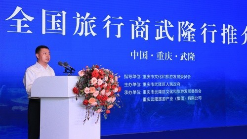2022年6月27日,武隆喀斯特申遺成功十五周年慶?;顒?dòng)暨全國旅行商武隆行推介會(huì)在仙女山隆重舉行,重慶市文化旅游委黨組成員、副主任秦定波,武隆區(qū)人大常委會(huì)副主任辛莉,武隆區(qū)人民政府副區(qū)長劉印,武隆區(qū)區(qū)級(jí)部門相關(guān)負(fù)責(zé)人及營銷人員、全國旅行商代表、新聞?dòng)浾吲笥压灿?jì)90余人齊聚一堂,共商武隆旅游發(fā)展大計(jì),共謀交流合作發(fā)展商機(jī),齊繪武隆旅游“三次創(chuàng)業(yè)”宏偉藍(lán)圖。