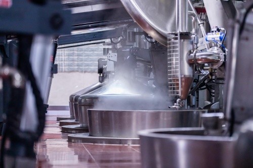 緊挨著中央控制室的是上甑區(qū)。目之所及,皆是各種大型機(jī)械設(shè)備以及密集的金屬管道,干凈、整潔、有序,由機(jī)械手、感應(yīng)器等各種部件組成自動化生產(chǎn)線,在收到中央控制室發(fā)出的指令后精準(zhǔn)地作出各種動作。