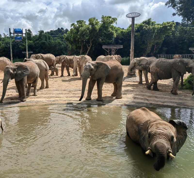 在國(guó)家林業(yè)和草原局、海關(guān)總署等津中兩國(guó)相關(guān)主管部門的聯(lián)合推動(dòng)之下,根據(jù)中非動(dòng)物保護(hù)合作相關(guān)的計(jì)劃,2015年7月,一群非洲大象來到清遠(yuǎn)長(zhǎng)隆安家,開啟了遷地保護(hù)之旅。長(zhǎng)隆通過中國(guó)野生動(dòng)物保護(hù)協(xié)會(huì)向津巴布韋國(guó)家保護(hù)基金捐助20萬美元,又通過遷地保護(hù)合作持續(xù)向該基金注資,用于當(dāng)?shù)亟鉀Q大象飲水、反擊盜獵等問題。
