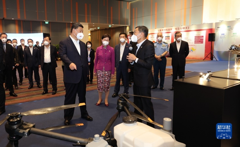 6月30日下午,國家主席習(xí)近平在香港特別行政區(qū)行政長官林鄭月娥陪同下,來到香港科學(xué)園考察。這是習(xí)近平在科學(xué)園展廳聽取香港創(chuàng)新科技發(fā)展、深港創(chuàng)新科技發(fā)展互動、香港科學(xué)園發(fā)展等情況介紹,觀看香港代表性創(chuàng)科企業(yè)展示。新華社記者