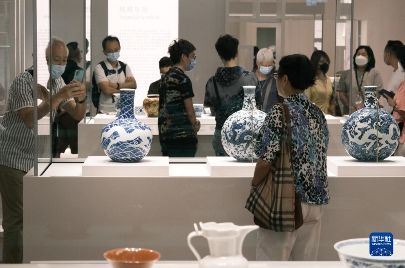 7月3日,參觀者在香港故宮文化博物館欣賞展品。新華社記者 王申 攝