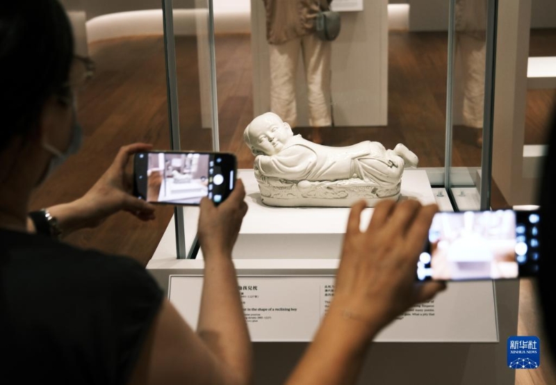 7月3日,參觀者在香港故宮文化博物館展廳內(nèi)拍攝展品。新華社記者 王申 攝