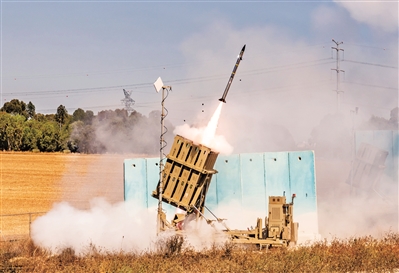 上圖:以色列“鐵穹”防空系統(tǒng)正在發(fā)射導(dǎo)彈。