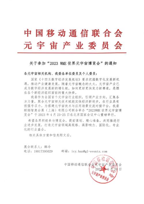 由中國移動通信聯(lián)合會元宇宙產(chǎn)業(yè)委員會和智奧會展(上海)有限公司共同舉辦的2023年WME世界元宇宙博覽會(www.wmewmc.com)將于2023年4月23-25日在北京·國家會議中心隆重召開。