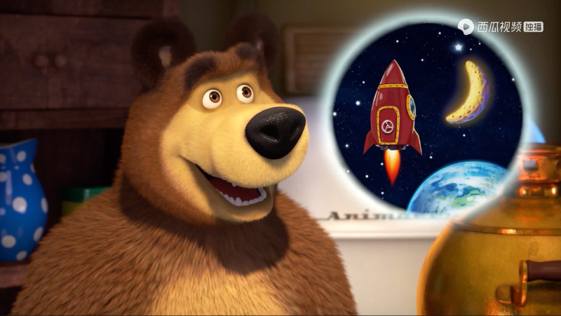 在《一起坐火箭去太空》一集中,熊熊要為了美麗的愛(ài)情成為“摘星星的熊熊”。當(dāng)瑪莎和小熊貓看到熊熊搬出了制作火箭要用的材料,成功激發(fā)了孩子們對(duì)太空的好奇和熱情,他們也向熊熊申請(qǐng)要一起去太空。