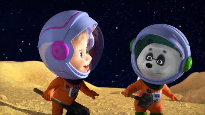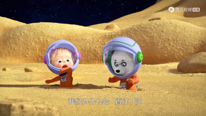 在《一起坐火箭去太空》一集中,熊熊帶著瑪莎和小熊貓穿過(guò)重重阻礙順利飛抵了太空,在零重力的環(huán)境下,瑪莎和小熊貓愉快地開(kāi)始玩耍,當(dāng)然,也少不了孩子之間爭(zhēng)搶食物的環(huán)節(jié)。兩個(gè)小家伙將食物擠爆到了空中,瑪莎不小心撞到了緊急按鈕,飛船瞬間失控,掉落到了月球上。