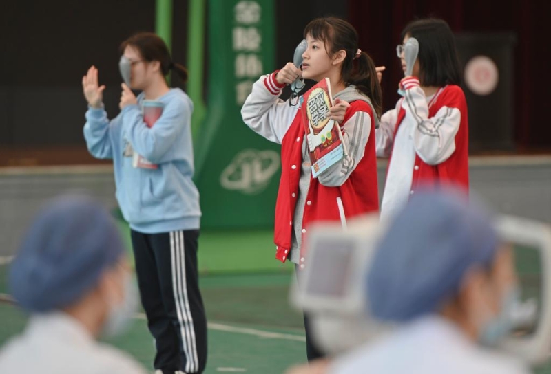 2021年4月28日,在福州第二中學(xué),學(xué)生在視力篩查中辨識視力表。新華社記者 宋為偉 攝