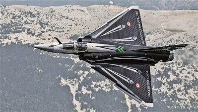 采用特別紀(jì)念涂裝的法國空軍幻影2000C戰(zhàn)斗機(jī),機(jī)翼后緣上印有“任務(wù)完成”法語字樣。