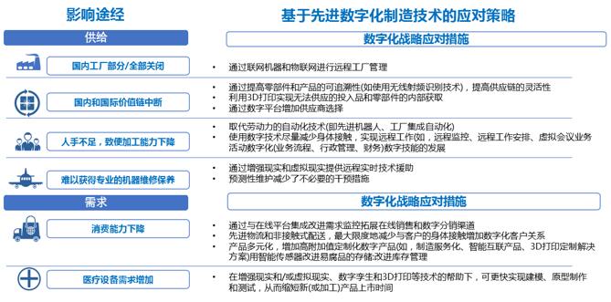 中長期看,從長效治理的角度而言,企業(yè)數(shù)字化有助于提高企業(yè)應(yīng)對危機的敏捷性。 可通過利用物流自動化裝備及數(shù)字化系統(tǒng)提升底盤運營能力,通過提高零部件和產(chǎn)品的可追溯性(如使用無線射頻識別技術(shù)),提高供應(yīng)鏈的靈活性等基于先進(jìn)的數(shù)字化制造技術(shù)來應(yīng)對。