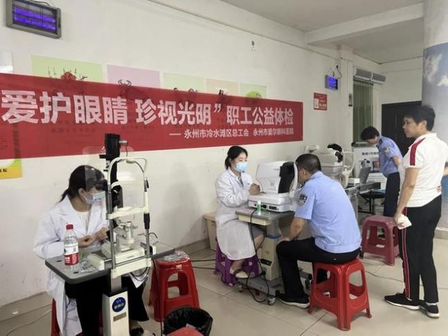 2022年6月6日是第27個全國“愛眼日”,今年的主題是“關(guān)注普遍眼健康,共筑‘睛’彩大健康”。工會組織如何做好對職工普惠性服務(wù),2022年6月起至年底,冷水灘區(qū)總工會攜手永州愛爾眼科醫(yī)院聯(lián)合開展全區(qū)職工眼健康普查行動。愛爾眼科醫(yī)院走進(jìn)區(qū)政府,區(qū)公路局,區(qū)法院、區(qū)環(huán)衛(wèi)局、春江小學(xué)、傳芳小學(xué)等單位,發(fā)放眼健康資料兩千余份,一千多人得到眼健康普查。