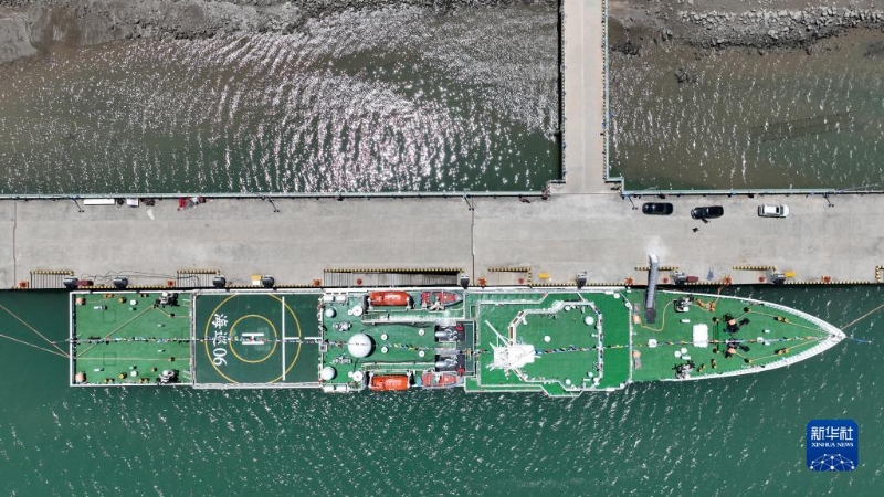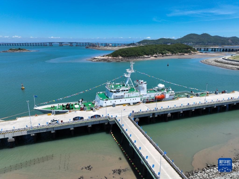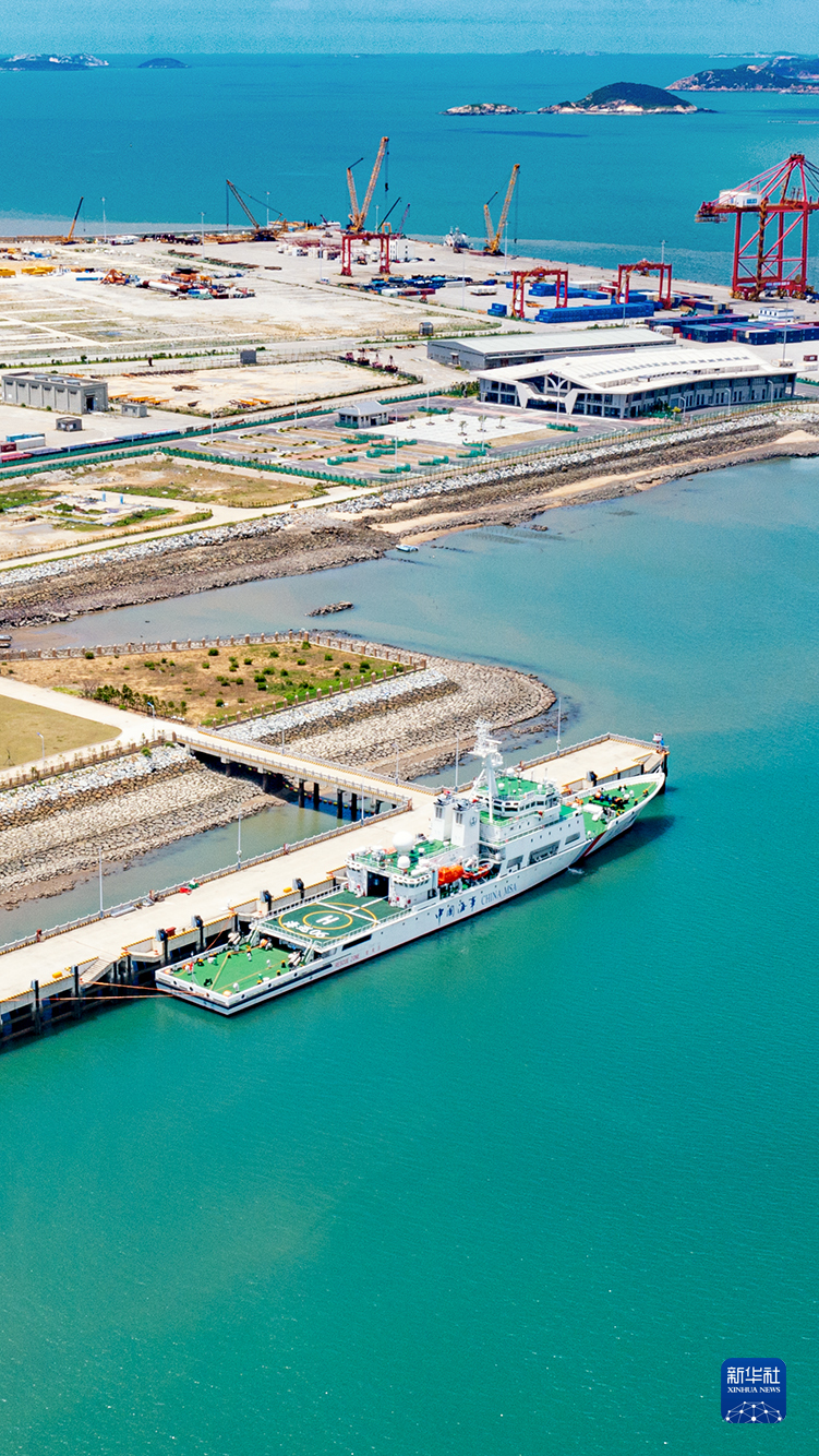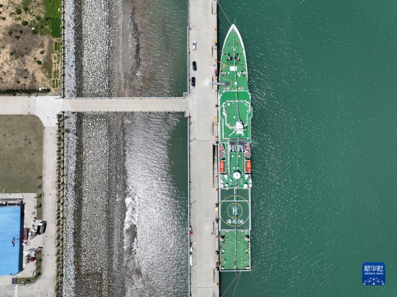 這是7月11日拍攝的停靠在平潭海事監(jiān)管基地的“海巡06”輪(無人機(jī)照片)。 新華社發(fā)