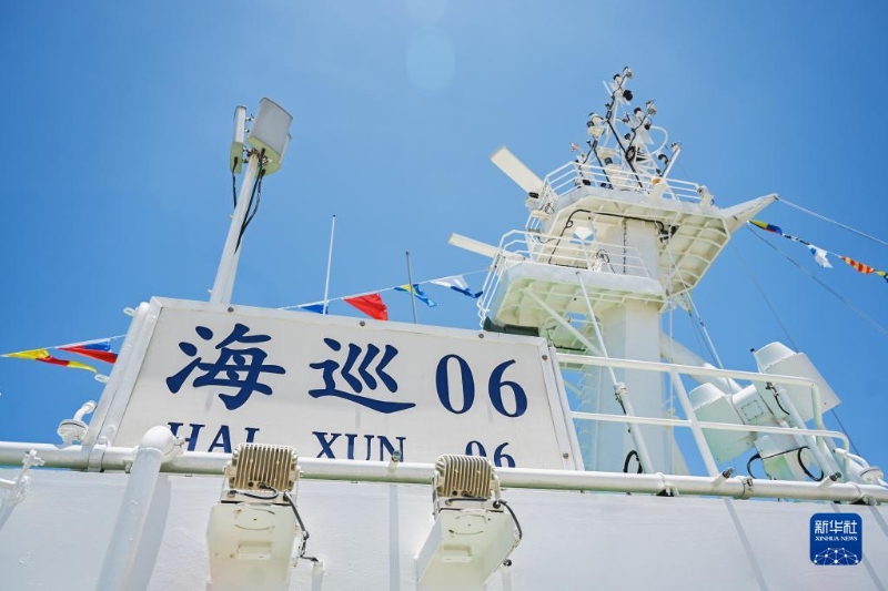這是7月11日拍攝的??吭谄教逗J卤O(jiān)管基地的“海巡06”輪(無人機(jī)照片)。 新華社發(fā)