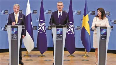 芬蘭與瑞典自二戰(zhàn)結(jié)束后一直奉行中立政策。俄烏沖突后,以美國為首的西方國家不斷渲染“俄羅斯威脅”,致使兩國放棄中立政策,謀求加入北約。芬、瑞兩國從5月提交申請書到7月簽訂議定書,過程一波三折。其進(jìn)展迅速,這與美國的大力推動密不可分。