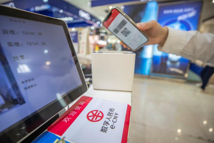 5月3日,一名重慶消費者在商場收銀臺使用數(shù)字人民幣進行支付。新華社記者 黃偉 攝