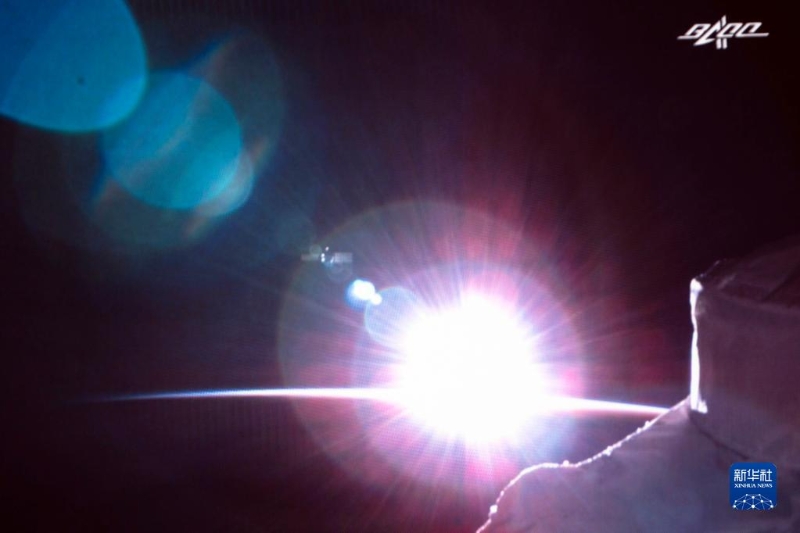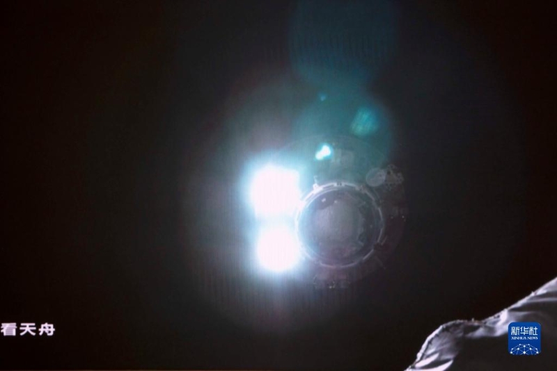 7月17日在北京航天飛行控制中心拍攝的天舟三號(hào)貨運(yùn)飛船撤離空間站組合體圖像。這是天舟三號(hào)貨運(yùn)飛船正在向200米停泊點(diǎn)撤離。新華社記者 郭中正 攝
