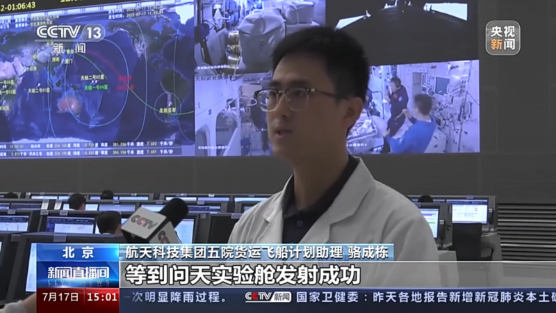 駱成棟:天舟三號目前已經(jīng)進入一個獨立飛行的狀態(tài),然后等到問天實驗艙發(fā)射成功與這個空間站組合體完成對接之后,我們的天舟三號將會觸控離軌,屆時我們將會通過兩次軌道的控制,然后將天舟三號飛船的軌道降低。