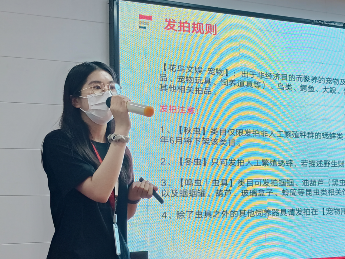 微拍堂類目運(yùn)營(yíng)王詩(shī)雨現(xiàn)場(chǎng)以秋蟲(chóng)行業(yè)為例,向?qū)庩?yáng)的蟋蟀商家們介紹了秋蟲(chóng)類目在微拍堂的行業(yè)狀況,并現(xiàn)場(chǎng)分享了往期的優(yōu)質(zhì)類目活動(dòng),鼓勵(lì)大家努力經(jīng)營(yíng),共同促進(jìn)秋蟲(chóng)行業(yè)在微拍堂的影響力。