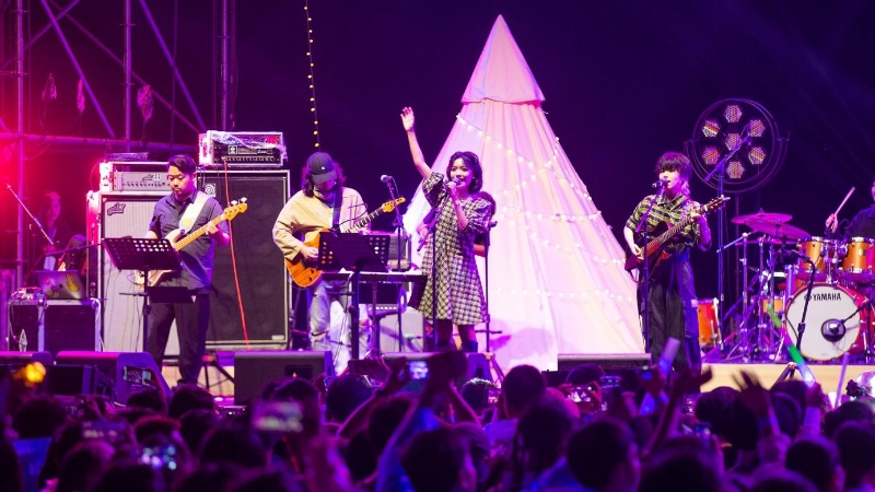 “仙女山真的好美!仙氣飄飄到處都是仙女!”房東的貓一出場就用重慶話向現(xiàn)場觀眾打招呼。外形清秀、聲音干凈清澈,房東的貓用空靈且獨特的音色,在低吟淺唱間,將聽眾帶到另一個關于青春和成長的世界。當《云煙成云》熟悉的旋律一響起,全場沸騰吶喊尖叫聲不斷。跟隨房東的貓,觀眾們在音樂的海洋里肆意搖擺,不少觀眾直呼現(xiàn)場聽簡直是享受!