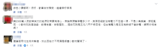 臺灣網(wǎng)友也紛紛留言說“她的官邸根本不會停電!只有老百姓受苦!”“高物價、高房價、高通膨、低三觀、學術倫理淪為笑話,然后,就可以萬年執(zhí)政了!”“夏天會很精彩,停電是日常沒停電是無?!?。