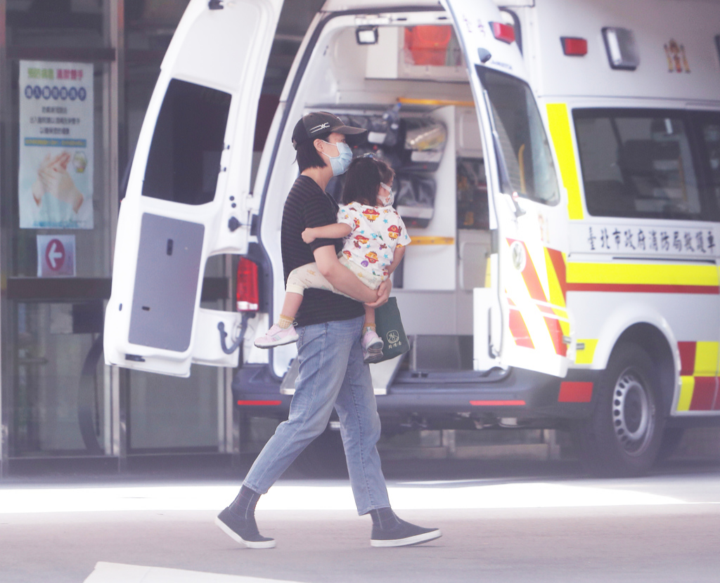 島內(nèi)醫(yī)師認(rèn)為下次單日確診破3萬的時(shí)候,可能就是BA.4、BA.5在臺(tái)灣社區(qū)掀起大流行。圖為家長(zhǎng)帶孩子去醫(yī)院急診門就醫(yī)的畫面。(陳怡誠(chéng)攝)