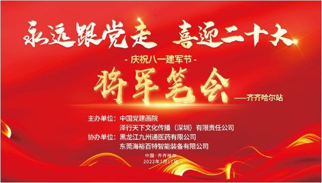 7月17日,以“永遠跟黨走,喜迎二十大;慶祝八一建軍節(jié)”為主題的將軍筆會在黑龍江省齊齊哈爾市舉辦。齊齊哈爾市把解放思想、振興文化作為發(fā)展的創(chuàng)新試點的金鑰匙。近年來在政治、經(jīng)濟、文化、民生等方面都取得了長足的發(fā)展。
