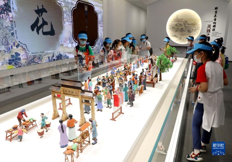 7月20日,小學(xué)生在江蘇蘇州虎丘景區(qū)民俗文化展廳參觀。