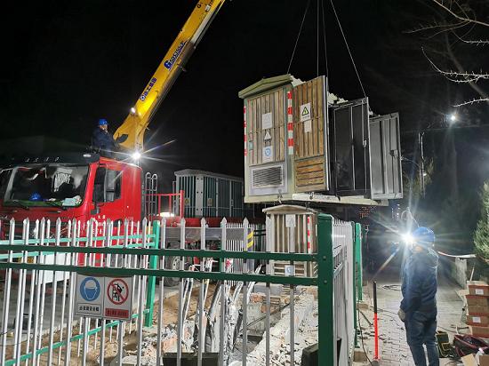 夜間氣溫驟降,快速復(fù)電是第一要?jiǎng)?wù)。搶修人員立即兵分三路展開搶修工作。第一組人員迅速將故障點(diǎn)進(jìn)行隔離,在19時(shí)55分,通過負(fù)荷轉(zhuǎn)供的方式恢復(fù)了非故障區(qū)域的送電。第二組人員調(diào)用兩臺(tái)500千瓦發(fā)電車,恢復(fù)了三合家園小區(qū)約640戶居民的供電,并安排2臺(tái)發(fā)電機(jī)解決了2家特殊用戶的用電需求。第三組人員制定了最為合理的搶修方案,聯(lián)合組織開展更換環(huán)網(wǎng)柜的工作,電纜絕緣搖測(cè)、設(shè)備預(yù)防性試驗(yàn)、新柜體吊裝、保護(hù)轉(zhuǎn)動(dòng)、電纜終端頭安裝等一系列搶修工作緊張有序的進(jìn)行著。