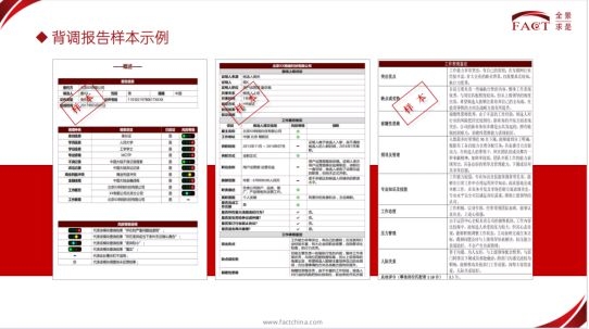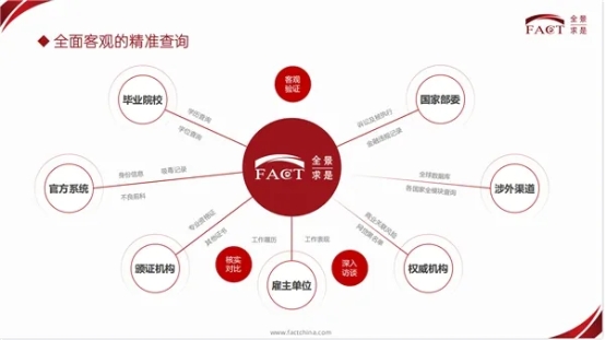 全景求是FACT自成立以來,直擊職場(chǎng)痛點(diǎn),通過專業(yè)快捷的背調(diào)服務(wù)迅速建立起廣泛影響。致力于在企業(yè)雇傭流程中,提供候選人背景核實(shí)、能力評(píng)估與人崗匹配、招聘風(fēng)控體系搭建等專業(yè)服務(wù),以提升招聘精準(zhǔn)度和有效性,降低雇傭風(fēng)險(xiǎn),助力候選人與企業(yè)成功。