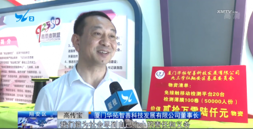 6月21日上午,為助力翔安疫情防控工作,在翔安區(qū)志愿者之家舉行一場愛心企業(yè)捐贈活動,在捐贈儀式上,廈門華拓智善科技發(fā)展有限公司九三學(xué)社翔安區(qū)基金委員會,向翔安區(qū)“92580志愿者聯(lián)盟”捐贈了一批價值20萬6千元的免接觸移動檢測平臺及檢測薄膜等愛心物資。