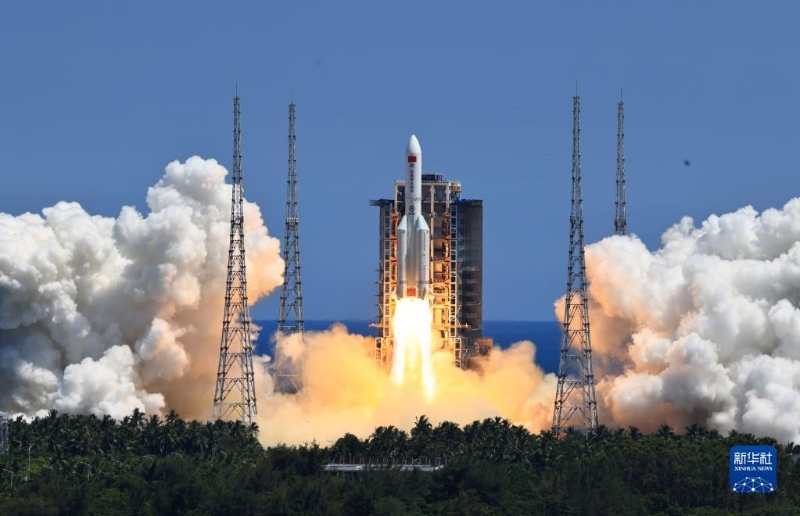 7月24日,搭載問天實(shí)驗(yàn)艙的長(zhǎng)征五號(hào)B遙三運(yùn)載火箭,在我國(guó)文昌航天發(fā)射場(chǎng)點(diǎn)火發(fā)射。新華社記者 郭程 攝