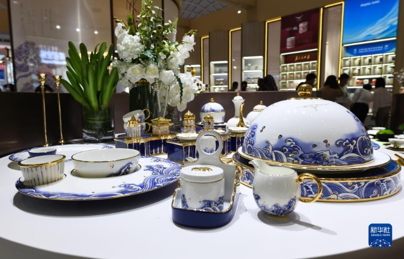 參展商深圳國(guó)瓷永豐源股份有限公司展出的瓷質(zhì)餐具(7月26日攝)。新華社記者 楊冠宇 攝