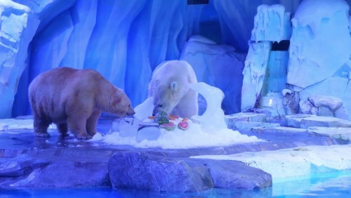 此外,上海海昌海洋公園內(nèi)的動(dòng)物們也開啟了它們的花式消暑生活。午間,海獸探秘館的海獅海豹們享用了保育員們精心準(zhǔn)備的“魚味冰沙”,冰山北極館內(nèi)的北極熊更是享用了由南匯水蜜桃、8424西瓜、奉賢黃桃組成的上海特色“豪華水果大餐”。據(jù)了解,為保證夏季海洋動(dòng)物的健康成長,園方的專業(yè)保育團(tuán)隊(duì)會(huì)定期調(diào)整升級(jí)海洋動(dòng)物的飲食,籌備多春魚、鮐魚、鯡魚為主的鮮魚冰山及特色應(yīng)季水果等為主的瓜果大餐,在為動(dòng)物們補(bǔ)水、補(bǔ)充蛋白質(zhì)和熱量的同時(shí),達(dá)到防暑降溫的作用。