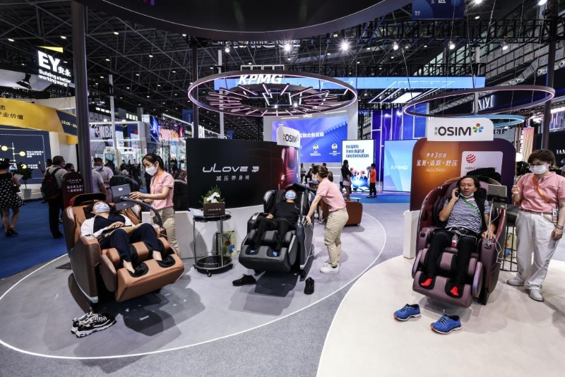 7月28日,觀眾在第二屆消博會(huì)體驗(yàn)按摩椅產(chǎn)品。新華社記者 張麗蕓 攝
