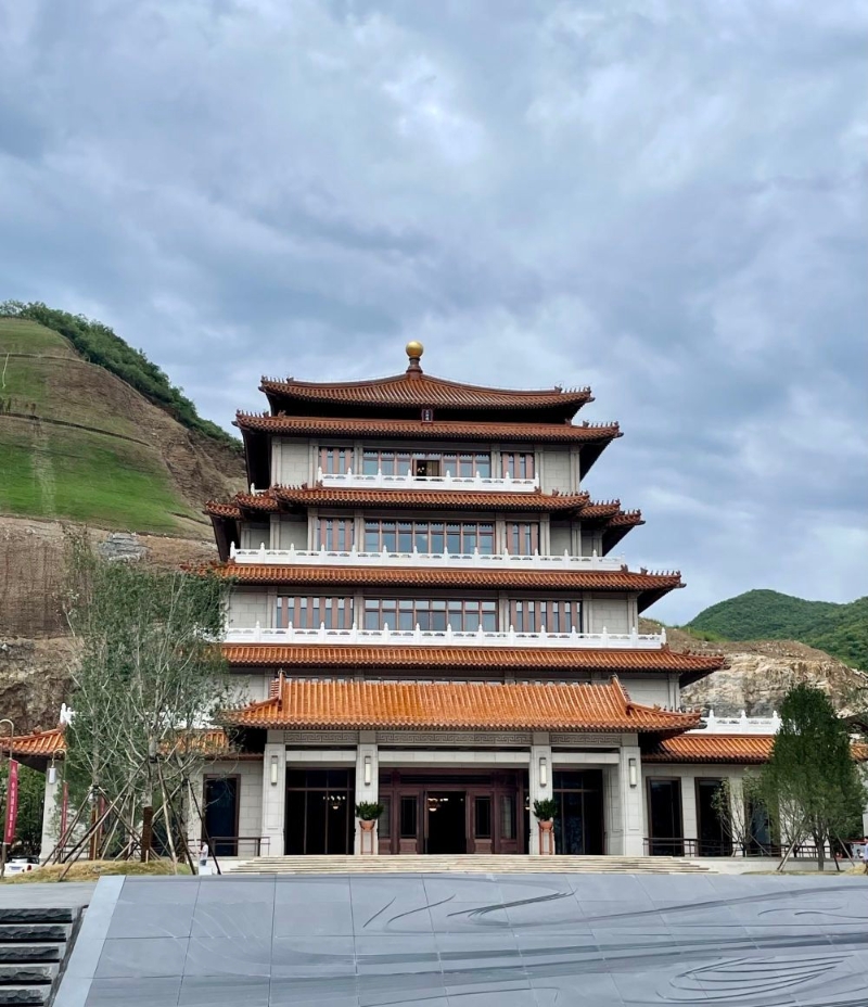 朱育帆認(rèn)為:“它具備山林地里邊院落的格局,這個(gè)格局里分三重院落。第一重承古開今,有一個(gè)15米長(zhǎng)的泰山石,泰山石實(shí)際上寓意的就是國(guó)家版本館,背后是一個(gè)禮儀大殿。我們現(xiàn)在所在的地方是國(guó)家書房,國(guó)家書房和中間的院落就形成了第二套院落。第三進(jìn)院落就是以文瀚閣為代表的一個(gè)庭院。文瀚閣背后是什么?原來(lái)宕口區(qū)形成的展卷,我們管它叫‘江山如畫’。”